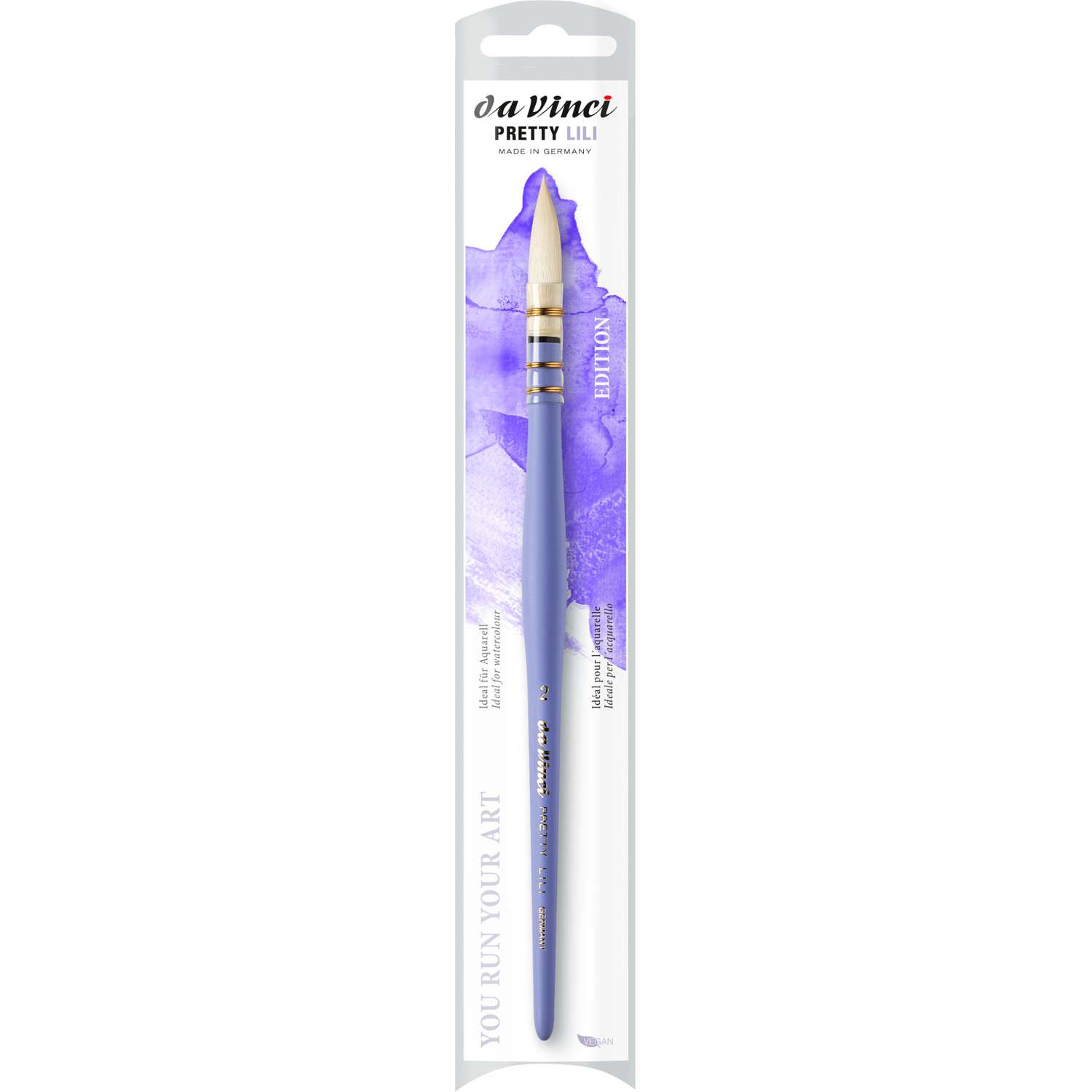 Der da Vinci PRETTY LILI Aquarellpinsel in Größe 2 ist ein farbenfroher, zuverlässiger Begleiter für Einsteiger und Hobbykünstler. Mit seiner feinen Spitze eignet er sich ideal für präzise Linien, Details und kleine Flächen. Die hochwertigen, synthetischen Fasern überzeugen durch gute Farbaufnahme, Elastizität und Formstabilität, eine vegane Alternative zu Echthaarpinseln. Der kurze, lackierte Holzstiel liegt angenehm in der Hand und sorgt für ein leichtes Handling, besonders bei Aquarell- und Gouache-Techniken. Preisgünstig, robust und langlebig – perfekt für kreative Projekte im Alltag und für alle, die mit Aquarellfarben experimentieren möchten.