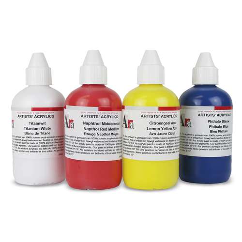 L'acrylique Ara est fabriquée à partir d’émulsion acrylique et de pigments très résistants à la lumière, elle se distingue également par une brillance qui vous séduira. Une fluidité agréable et une intensité superbe.