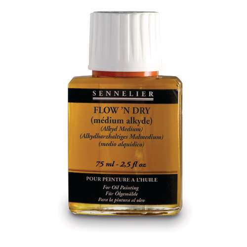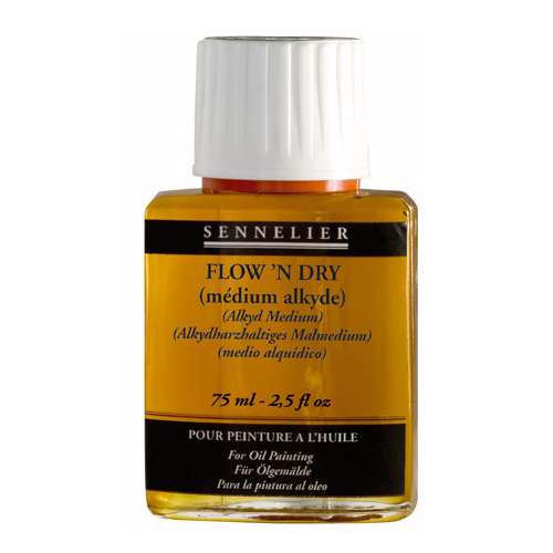 le Médium Flow'n dry accélère fortement le "séchage". Il améliore l'onctuosité de la touche et fluidifie la pâte. Donne du brillant à la touche, résiste au jaunissement, convient bien pour les glacis.