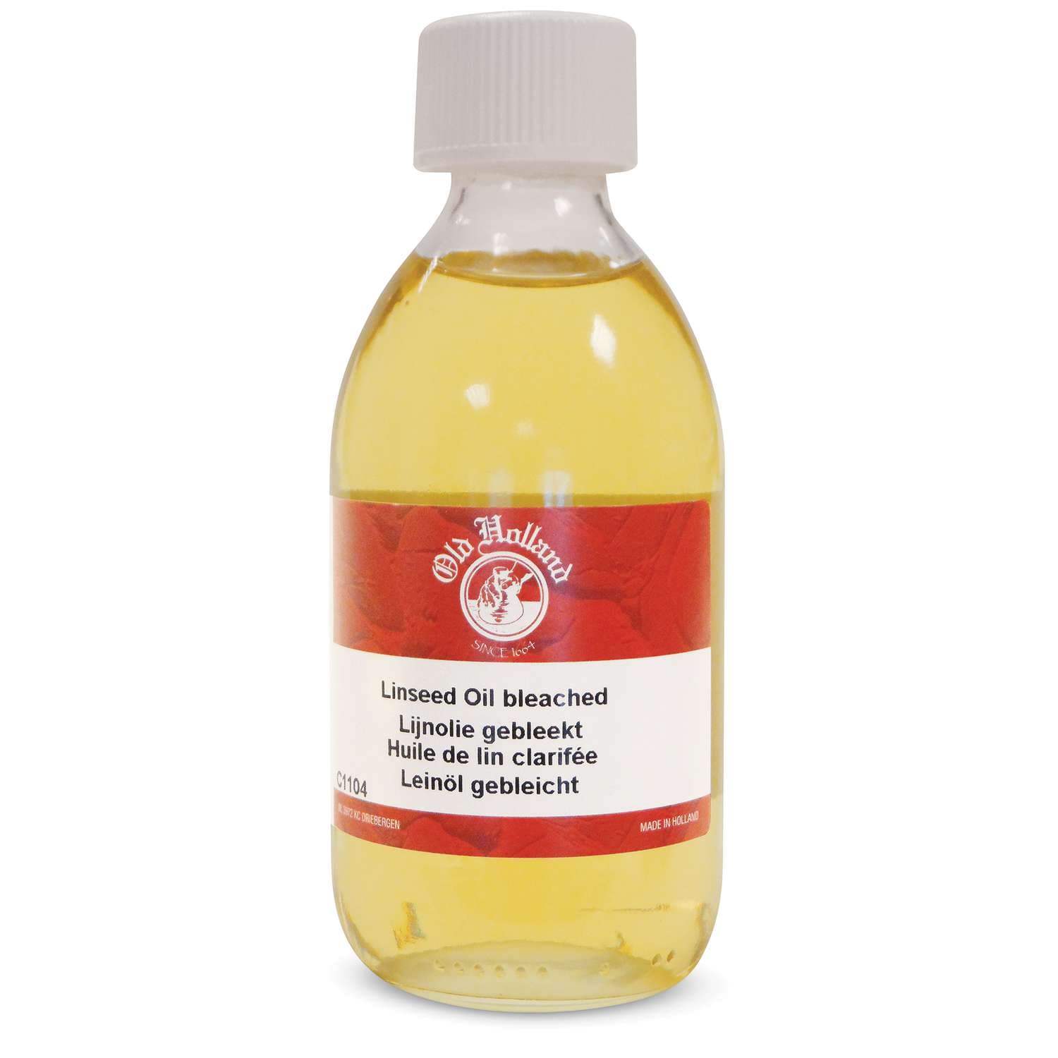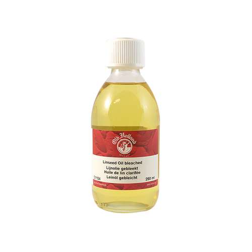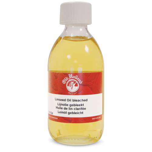 Huile de lin pressée à froid et ensuite blanchie. Augmente la fluidité et fait disparaître le coup de pinceau. Renforce la brillance et ralentit le temps de séchage. Se dilue dans l’huile de térébenthine et la térébenthine. Plus
