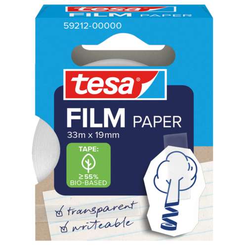 Le rouleau d´adhésif papier tesafilm® est un ruban adhésif doté d’un support en papier qui permet une application transparente.Le ruban adhésif, d’une largeur de 19 mm, est idéal pour une utilisation au bureau, à la maison, à l’école ainsi que pour des projets décoratifs. Plus