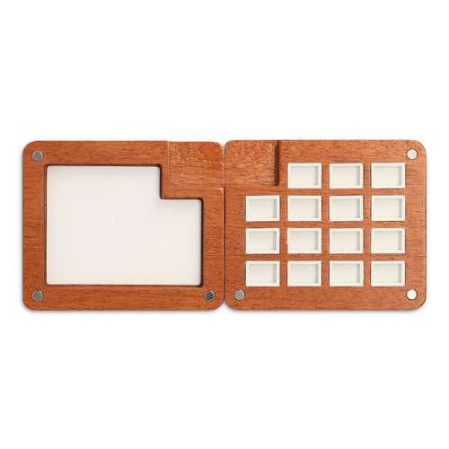 Fabriqué en bois de haute qualité, ce coffret offre une robustesse et une durabilité exceptionnelles tout en restant léger. Son système astucieux repose sur deux parties magnétiques qui s’assemblent facilement, offrant un support stable pour vos godets ou vos pinceaux. Une pince pratique permet de maintenir le coffret fermé lorsque vous le transportez, garantissant que vos aquarelles et accessoires restent bien en place.