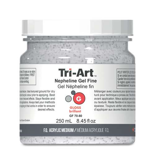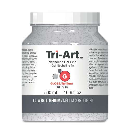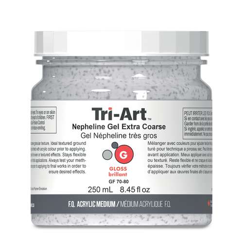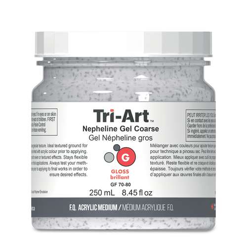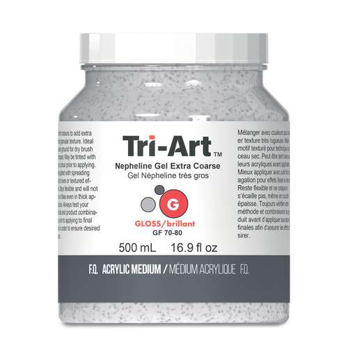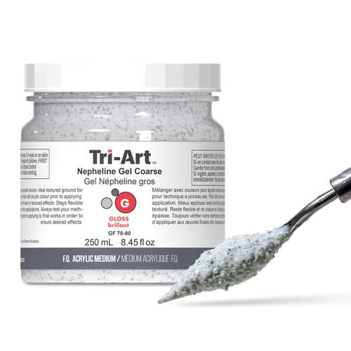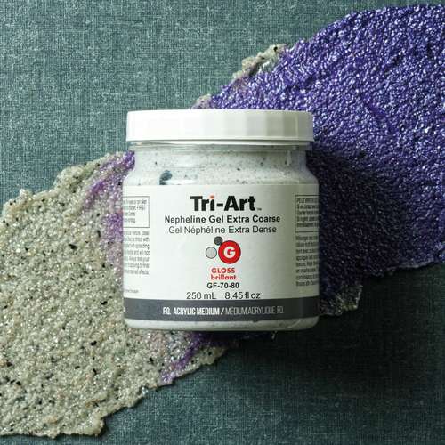 Découvrez le médium gel Népheline Tri-Art. Il s'agit d'un médium acrylique semi-transparent qui permet de créer des effets de textures granuleuses.