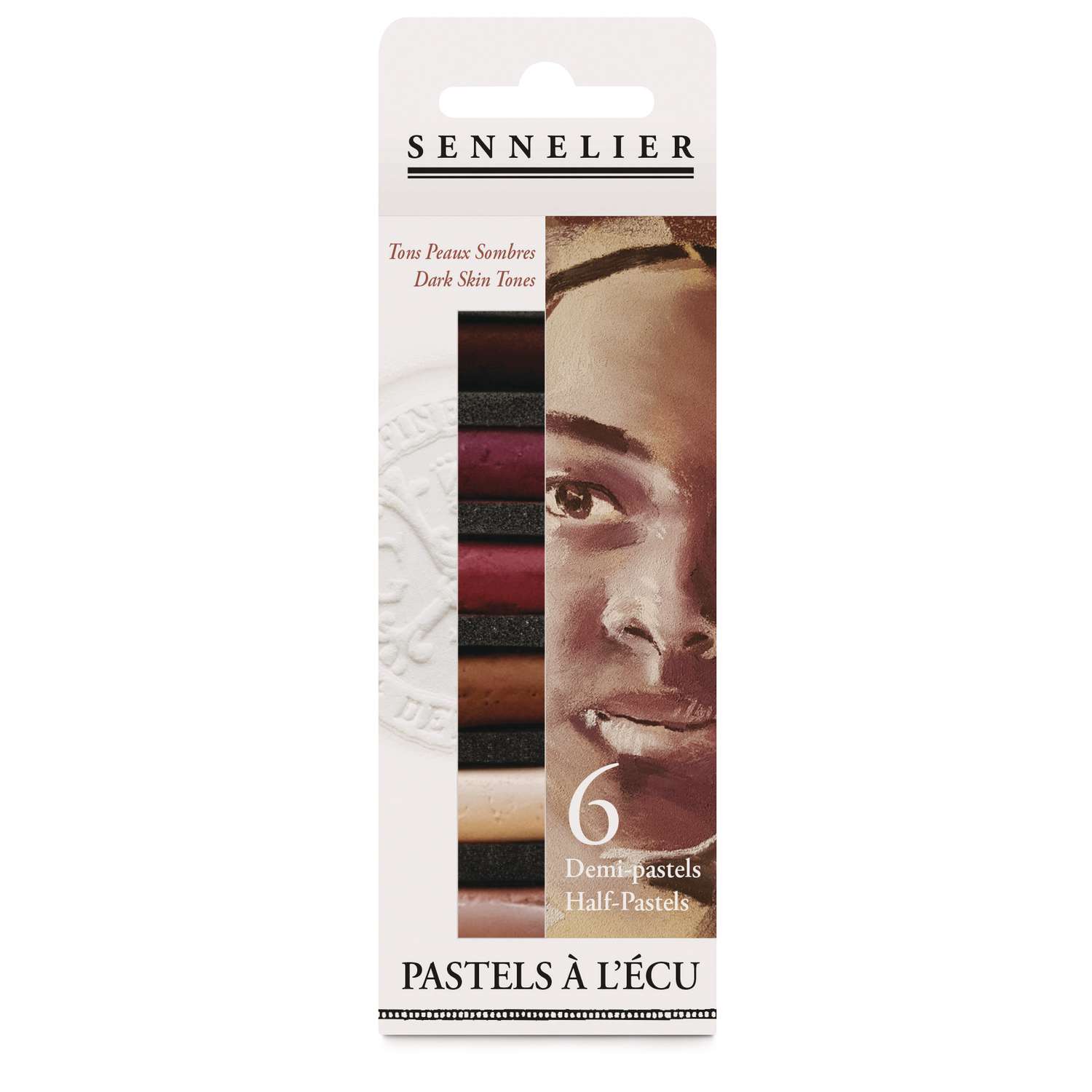 Le coffret "Peau foncée" de 6 PASTELS À L'ÉCU contient les couleurs suivantes :
