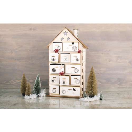 Une surprise tous les jours ! Avec le joli calendrier de l'avent en bois en forme de maison de Rayher, attendre Noël est un vrai plaisir. A décorer selon votre inspiration.