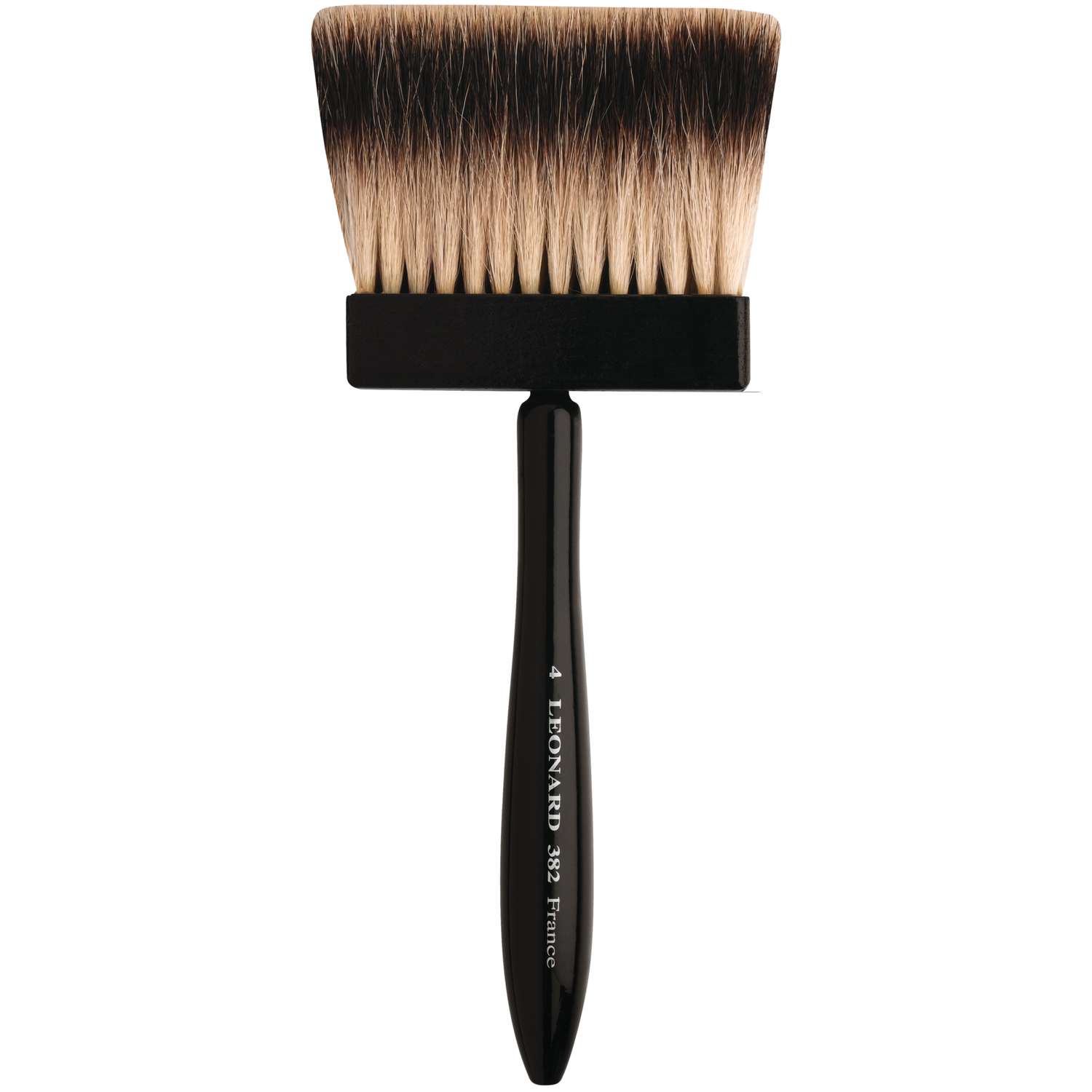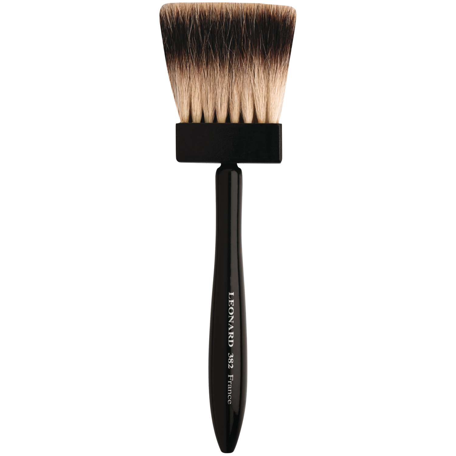 Balai blaireau LÉONARD série 382 PL constitué de 3 rangs de mèche en blaireau. Le manche est noir. Le pinceau balai convient très bien pour balayer délicatement les masses de couleur à sec et les atténuer lors de la réalisation d’un faux marbre ou faux bois.