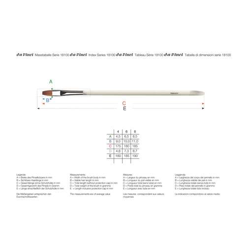 Le Pinceau pour ongles martre Kolinsky DA VINCI, série 18100 pour la technique d´acrylique et la technique de gel. Les poils naturels de martre rouge Kolinsky confèrent au pinceau une élasticité et résistance remarquables mais aussi une très bonne rétention de couleurs. la pointe du pinceau est très fine mais vigoureuse. Les poils naturels permettent de dessiner les plus petits ornements, fleurs et décorations sur les ongles. Idéal aussi pour la technique du One-stroke.