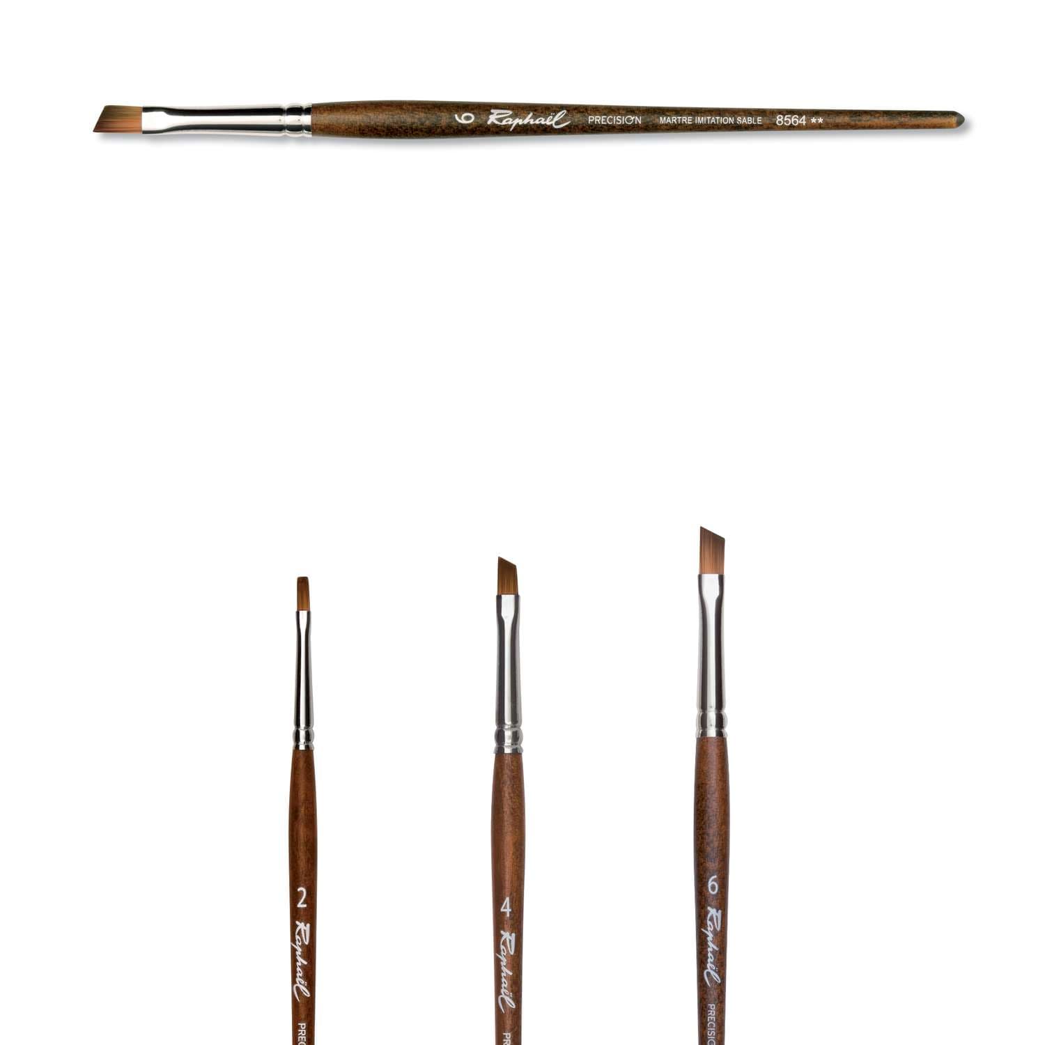Le pinceau Raphaël pointe biseautée, série 8564 s'utilise sur le côté ou la tranche pour les traits fin, déliés et angles droits. 3 tailles au choix.