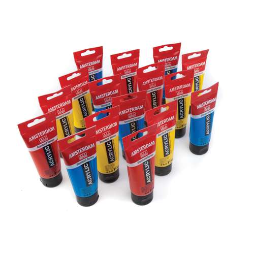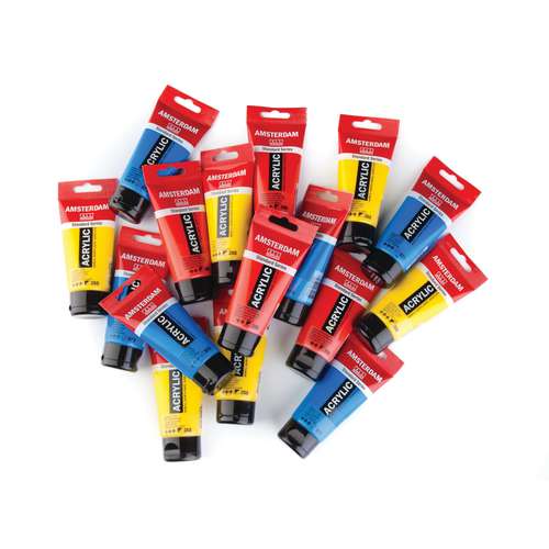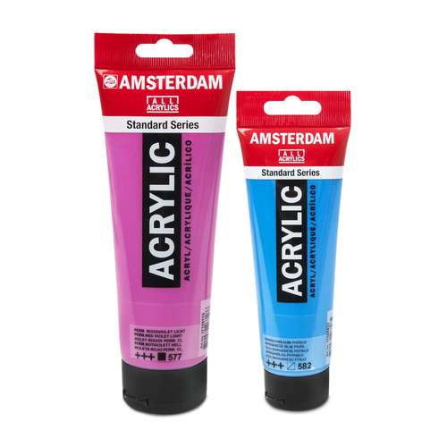 L´acrylique TALENS AMSTERDAM "Séries Standard" se compose d´une émulsion acrylique à 100% et de pigments de grande qualité. La couleur est diluable à l´eau et imperméable une fois sèche. De nombreuses couleurs vous sont proposées en tubes de 20 ml, 120 ml et 250 ml, en bouteilles de 500 ml et 1 litre et le blanc de titane en seau de 2,5 liltres.