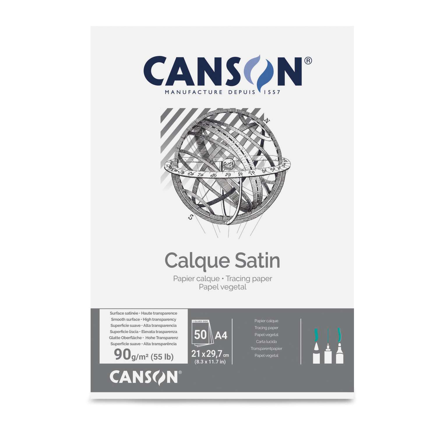 Le bloc calque satin Canson est idéal pour tous les types de dessins techniques, il convient parfaitement aux crayons, aux stylos et aux pointes tubulaires.