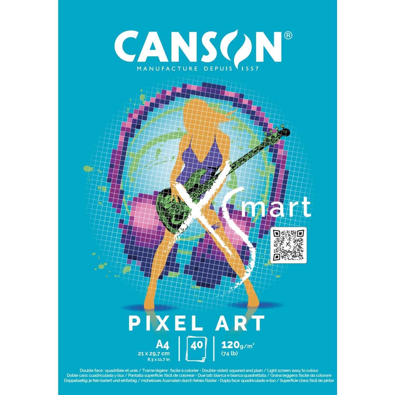 Le bloc CANSON® XS'MART PIXEL AR est parfait pour les graphites, les crayons de couleur et les feutres fins qui soulignent les contours. Le quadrillage imprimé de 5 x 5 mm est facile à colorier et permet de créer un design Pixel-Art.