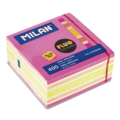 - 43190 : 400 notes autocollantes en 3 couleurs fluo + jaune clair, 76 × 76 mm.
