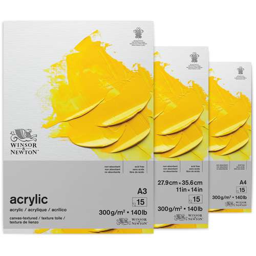 Le bloc pour acrylique Galeria de WINSOR & NEWTON™ contient 15 feuilles de papier ayant la texture d´une toile pour couleurs acryliques. Le papier est conçu