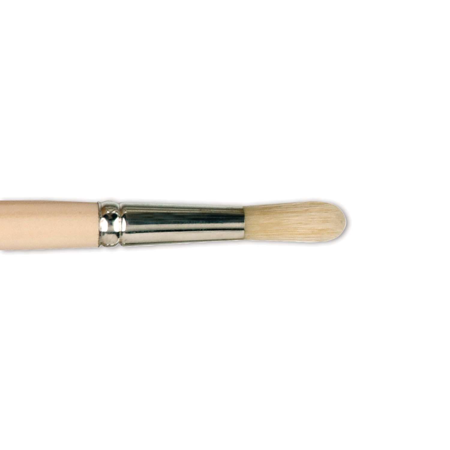 Brosse Gussow Gerstaecker, pointe ronde en soies de porc blanches. Virole argentée. Long manche en bois brut. Brosse à la fois résistante et économique, idéale pour l'acrylique, l'huile et les couleurs opaques.