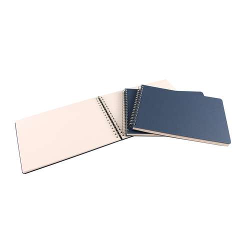 Les cahiers de croquis sont dotés de couvertures Cupcycling™ bleues, avec coins arrondis et reliure spirale. Leur papier recyclé naturellement blanc de 140 g/m² est parfaitement adapté aux techniques sèches comme humides.