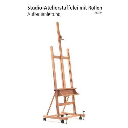 Le chevalet d'atelier à roulettes Studio de GERSTAECKER, robuste avec un pied en H et équipé d´une tablette de rangement, est fabriqué en bois d´hêtre. Grâce aux 4 roulettes et aux vis de blocage, le chevalet reste très stable.