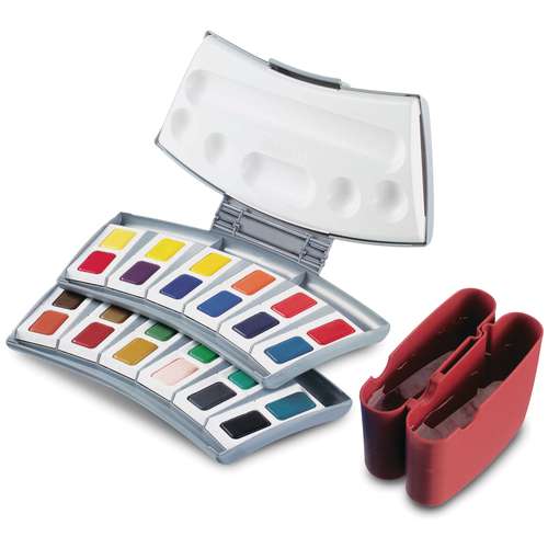Coffret d'aquarelles Pelikan, aquarelle de grande qualité satisfaisant tous les vœux et besoins des écoliers et artistes. Les nuances pures en 12 ou 24 godets sont facilement solubles, et résistent bien à la lumière. Le rapport qualité/prix est avantageux. La quantité de peinture comprise dans un godet représente la quantité normale comprise dans un godet d´aquarelle entier. Le coffret d´aquarelle Pelikan est livré avec une notice détaillée de 16 pages.