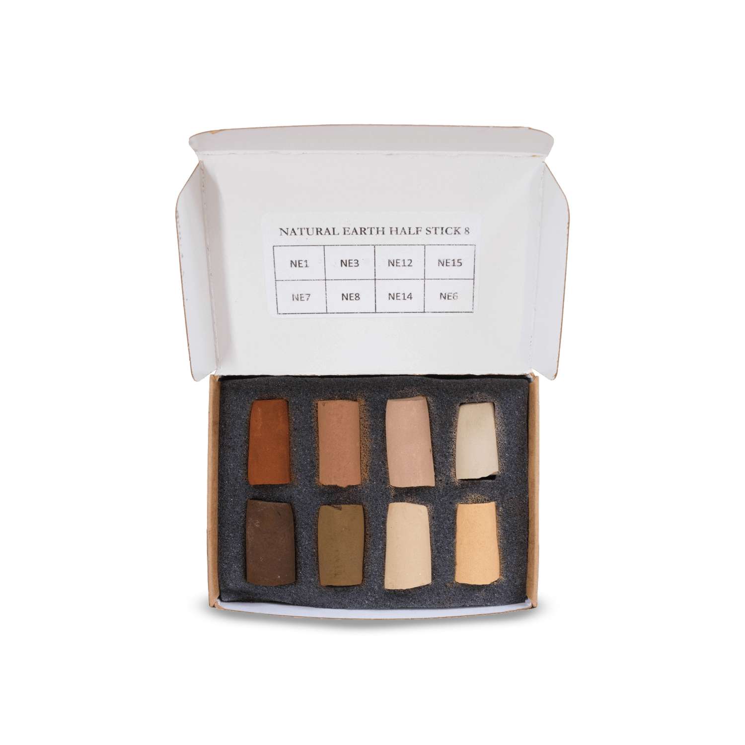 Les pastels contiennent très peu de liant, ce qui les rend doux et lisses. Ils sont fabriqués à la main, mélangés selon des recettes méticuleuses et sont basés sur des pigments traditionnels tels que les cadmiums, les cobalts et les terres naturelles et synthétiques. Les bâtons mesurent environ 2,5 cm x 1,2 cm, mais varient légèrement en raison du processus de fabrication manuelle.