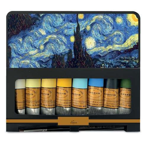 Les coffrets Œuvres et Nuances Charvin se déclinent en plusieurs thèmes : Klimt, Hokusai, Boticcelli, Vermeer, Monet, Van Ghogh, Signac. Chaque sélection propose une harmonie étudiée pour faciliter la création et stimuler la créativité, que vous soyez artiste confirmé ou amateur passionné.