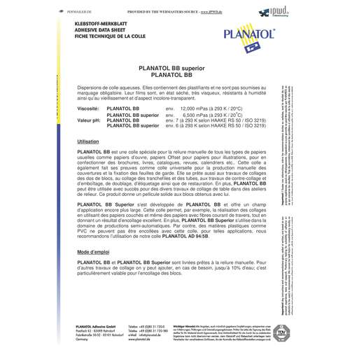La colle Planatol BB est fabriquée sans acide, ph neutre et d’une grande pérennité. Cette colle spéciale pour collage de bloc de papier, de livre, de calendrier et de chemise de présentation, etc.