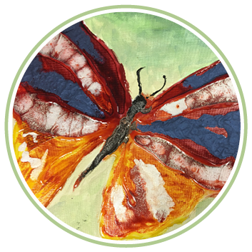 Créez un papillon Mixed Media plein de fantaisie avec de la peinture pour porcelaine, de la peinture pour verre, de la peinture acrylique et différents médiums de peinture.