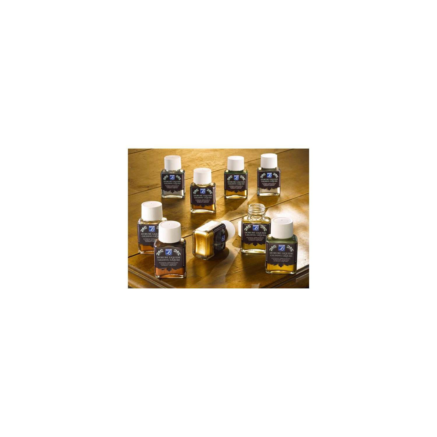 Dorure liquide LEFRANC & BOURGEOIS, permet une application homogène sur les grandes surfaces, au rouleau à peindre ou au pinceau synthétique. Offre de beaux éclats. Utilisation sur différents matériaux : papier, bois, argile, verre, plâtre, métal, tissus décoratifs, céramique…