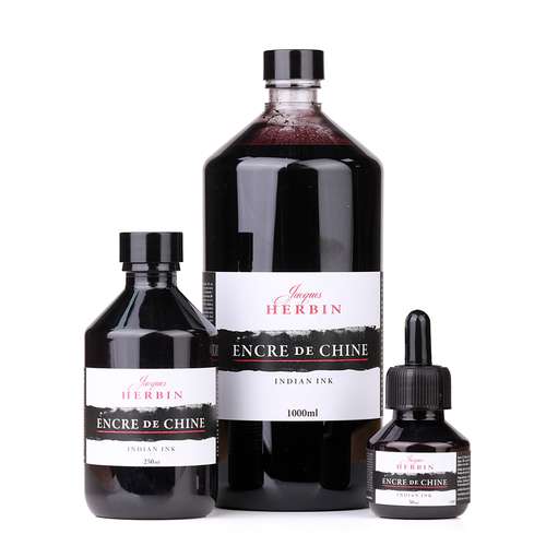 L’encre de Chine HERBIN noire contient de la gomme laque qui lui confère un caractère brillant une fois sèche. Elle est parfaite pour la calligraphie et le dessin et s’utilise à la plume ou au pinceau. Pour porte-plume, pinceau et calame.