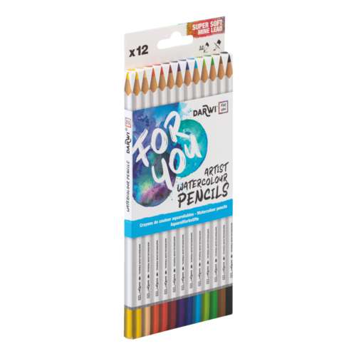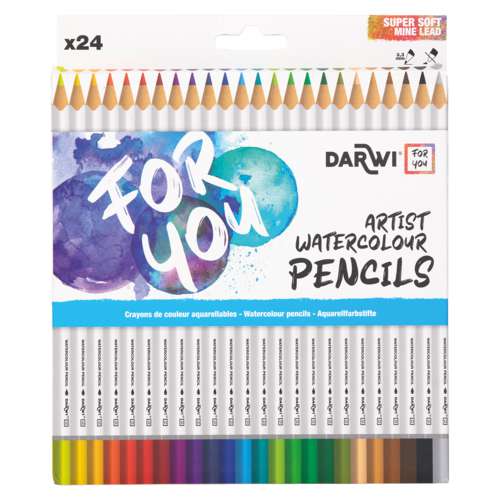 Les crayons aquarellables pour artistes Darwi® For You sont des crayons de couleur hautement pigmentés à la texture douce et soyeuse, utilisables à sec ou avec de l'eau. Lorsqu'on les applique avec un pinceau humide, ils produisent de superbes effets d'aquarelle, tandis qu'à sec, ils offrent des traits nets et précis.