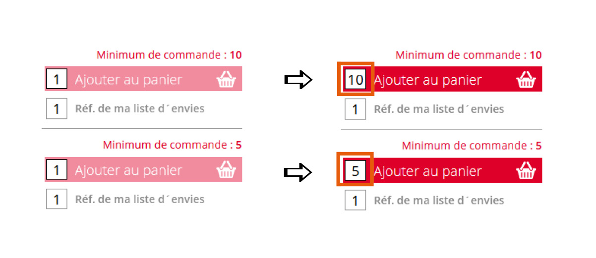 Quantité/valeur minimale de commande :