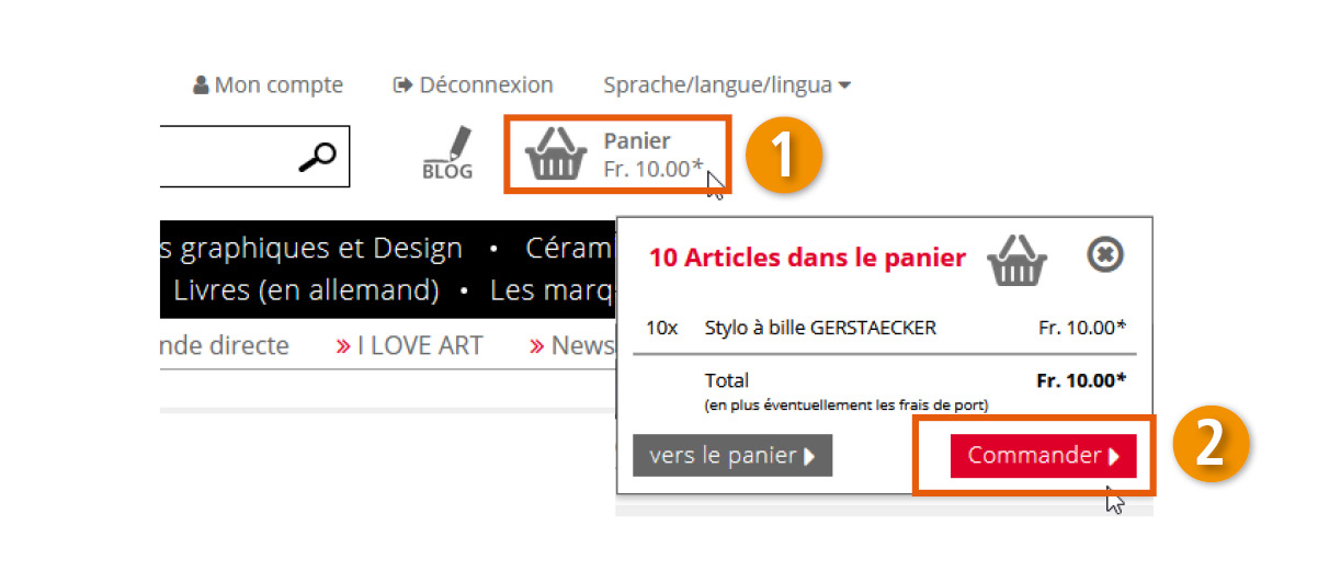 Accès direct à l'étape de commande suivante dans le panier :
