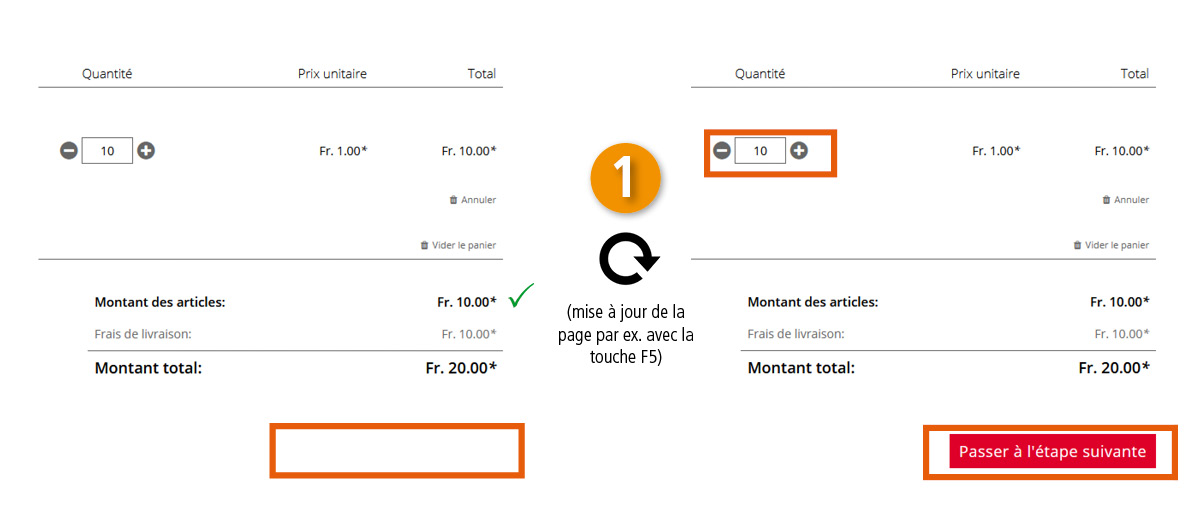 Veuillez vérifier que vous ayez atteint la quantité minimale de commande requise ou la valeur minimale de commande de Fr. 10.-.