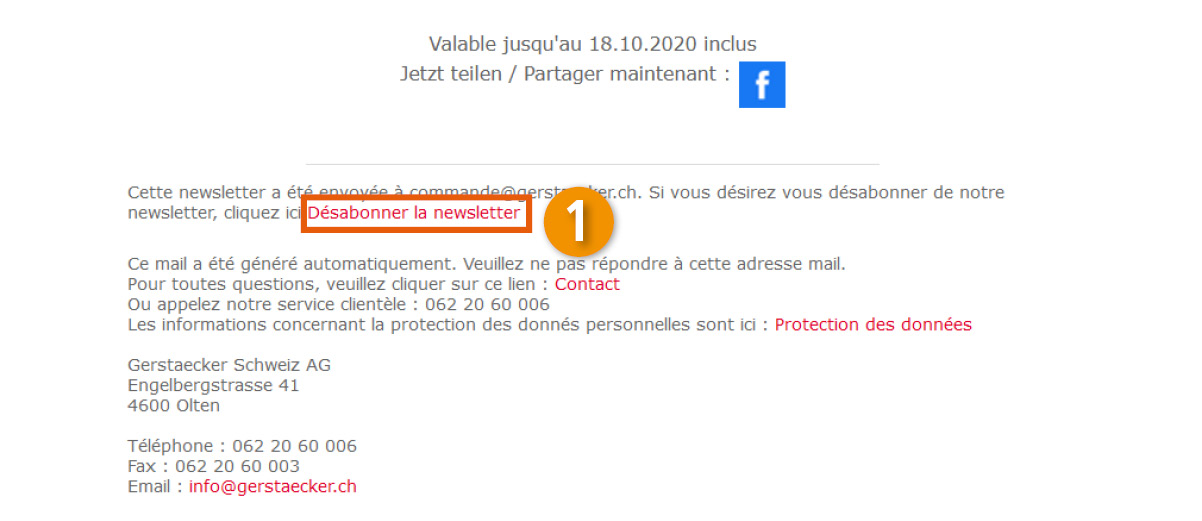 Désinscription directement dans la newsletter :