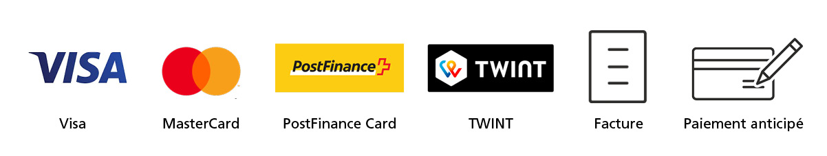 Veuillez noter que nous exigeons le paiement anticipé pour les nouveaux clients (sauf institutions publiques). Pour éviter des retards, nous vous conseillons de payer la commande par carte bancaire, PostCard ou TWINT.