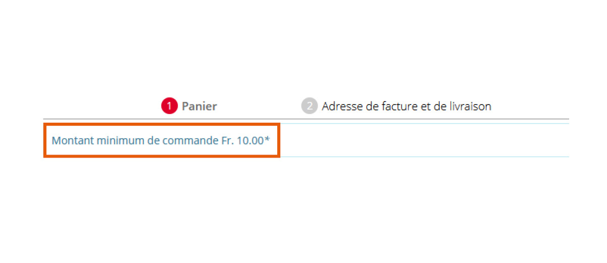Veuillez vérifier que vous ayez atteint la quantité minimale de commande requise ou la valeur minimale de commande de Fr. 10.-.