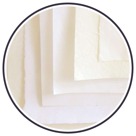 Le papier japonais est traditionnellement exceptionnellement fin et enchante par sa surface naturelle. Il est très doux et est souvent utilisé pour la peinture à l'encre chinoise.