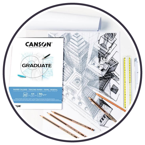 Dans cette rubrique, les dessinateurs en bâtiment, les architectes, les décorateurs d'intérieur et bien d'autres trouveront leur bonheur. Si l'on connaît le papier calque d'autrefois, lorsque l'on calquait ses motifs préférés, il est devenu un support important pour diverses professions.