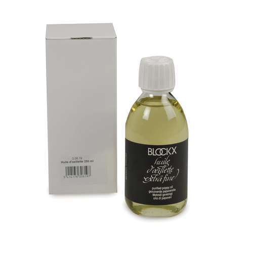 l'huile d'oeillette est moins jaunissante, mais également moins siccative que l’huile de lin. l'Huile d'oeillette est spécialement recommandée pour les couleurs pouvant souffrir d’un jaunissement (blancs, tons clairs et les bleus).