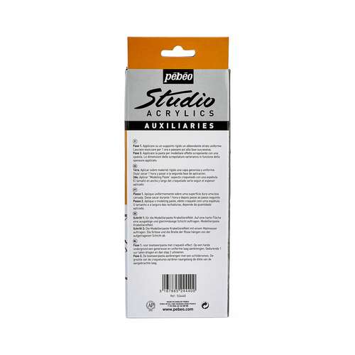 Le Kit Modeling Pébéo effet craquelé est idéal pour donner un effet structuré craquelé. Le Kit Modeling Pébéo effet craquelé est une pâte épaisse qui se mélange humide avec des acryliques. Le modeling paste Studio garde l’empreinte de l’outil, se sculpte, se peint et peut se poncer une fois sec.