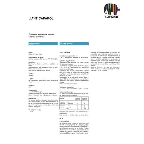 Dispersion synthétique incolore de grande qualité. Liant pour la préparation des peintures pour tableaux, murs et façades. Améliore la qualité des peintures à la colle et à la chaux. Adjuvant pour la colle des papiers peints en améliorant leur adhérence. Liant pour la fabrication des lasures. Sur tout support préalablement dégraissé : bois, toile, contreplaqué, carton, ciment, plâtre, etc.