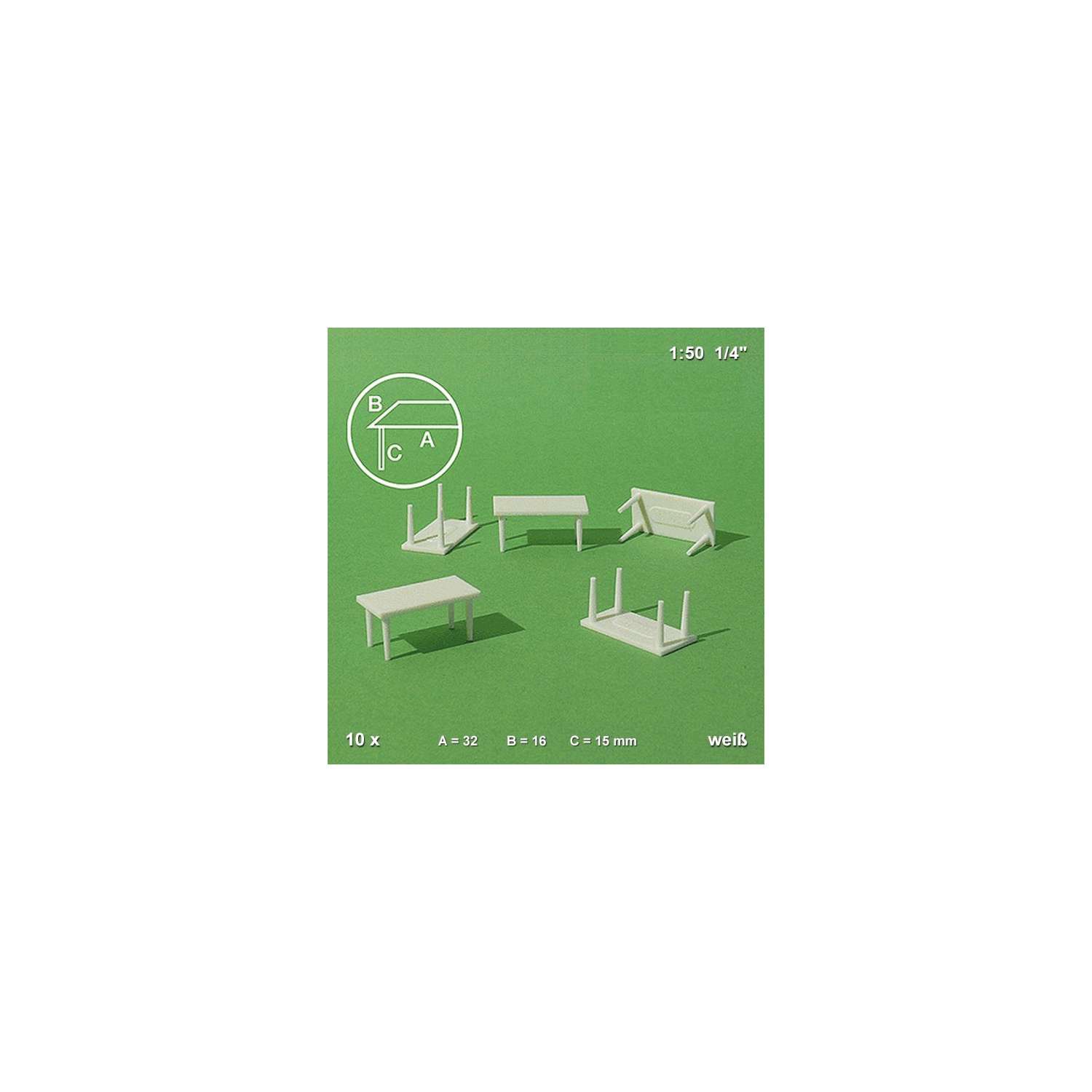 Avec ce lot de 10 tables rectangulaires Schulcz vous pouvez aménager et enrichir les intérieurs de maquettes d’architecture, dioramas, modèles réduits et environnements miniatures avec réalisme.