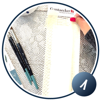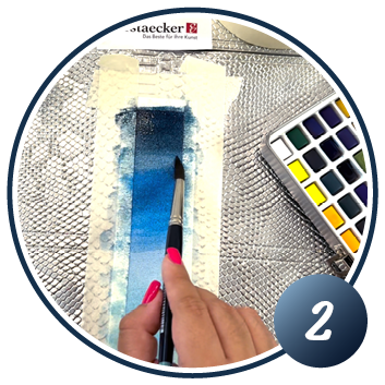 Choisissez un papier marque-page prêt à l'emploi ou découpez le vôtre dans du papier aquarelle épais (300 g/m²).Si vous souhaitez obtenir une bordure blanche, collez soigneusement du ruban adhésif le long des bords. Fixez en même temps le papier sur votre support.