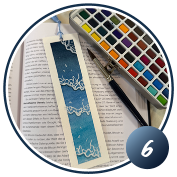 Une fois que tout est bien sec, retirez délicatement le ruban adhésif. Vous pouvez égaliser les bords irréguliers à l'aide d'un peu de peinture blanche.Vous pouvez également plastifier votre marque-page et le décorer avec une petite étiquette ou un ruban pour le personnaliser davantage.