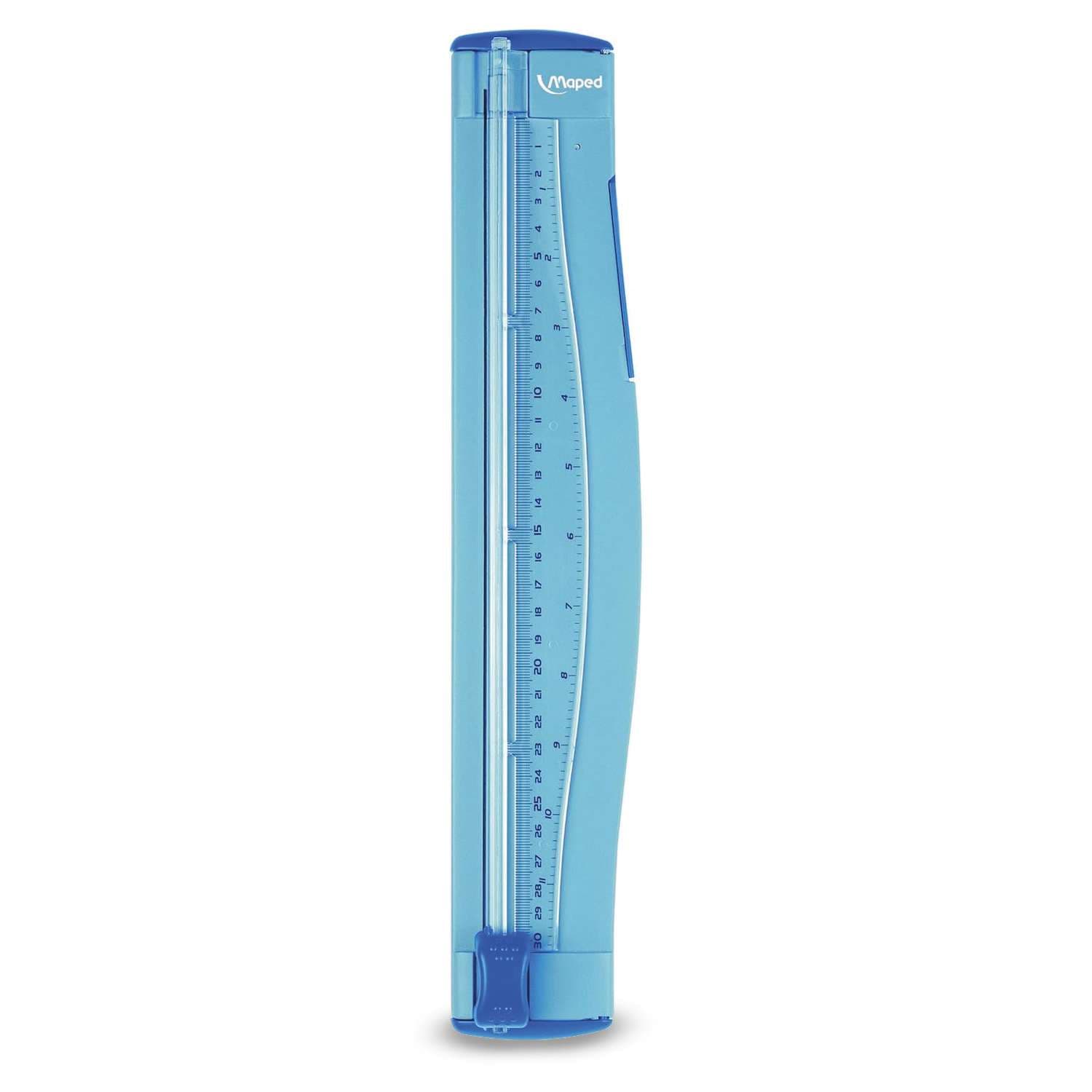 - La réglette intégrée, graduée en centimètres et en pouces, vous guide et facilite la découpe.