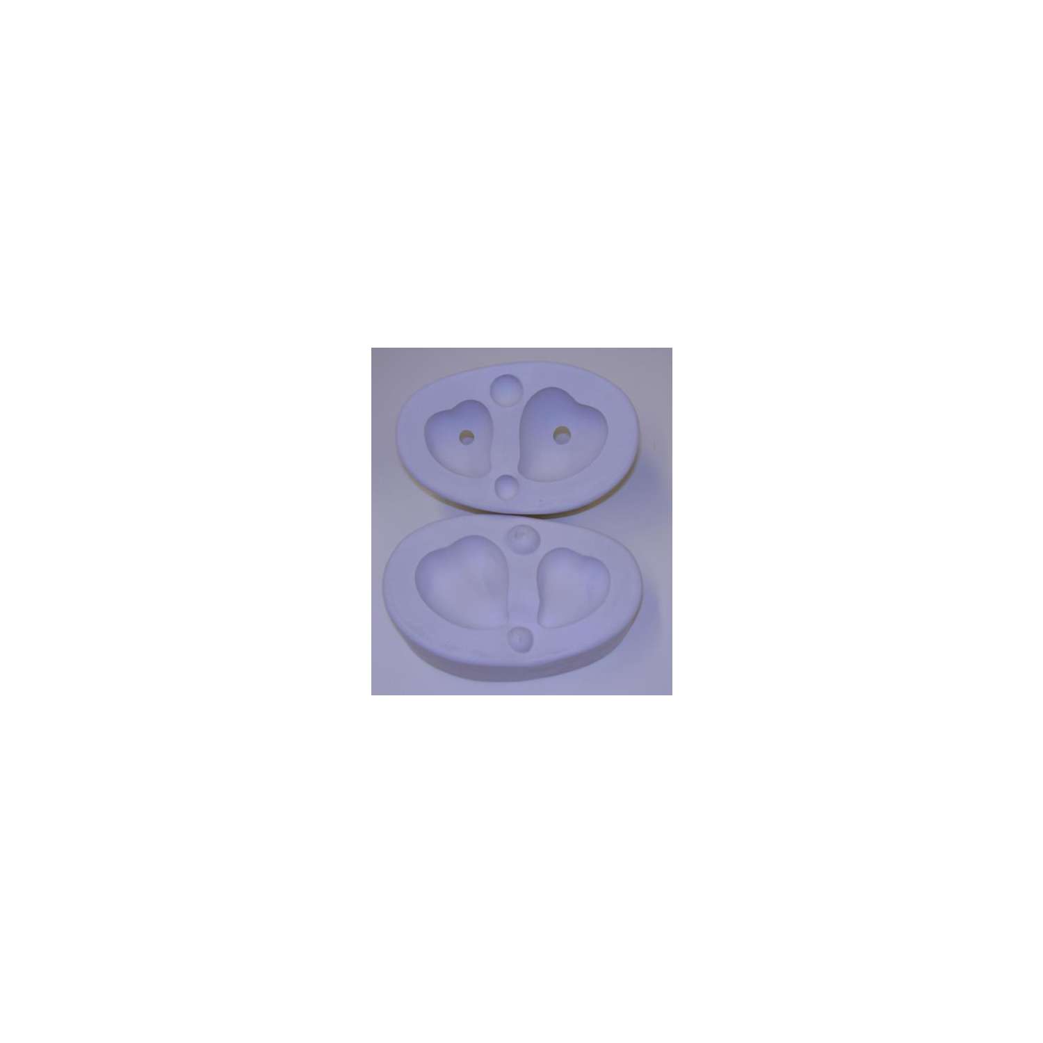 Moule de coulée en plâtre en 2 parties pour former deux cœurs en céramique de 4 cm et de 5 cm.