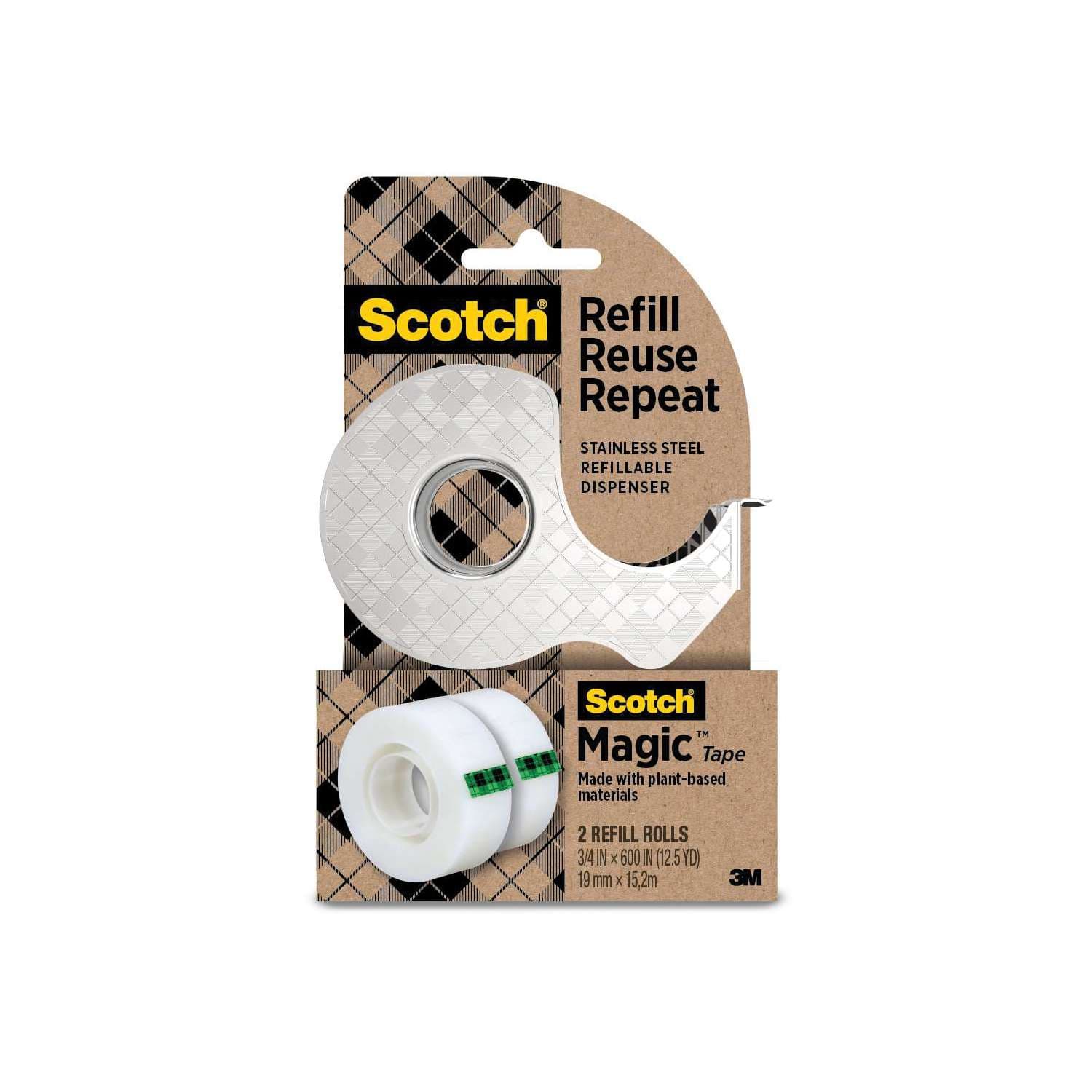 - 2 recharges de rubans Magic 19 mm x 15,2 m faits avec 66 % d’adhésif à base de plantes.