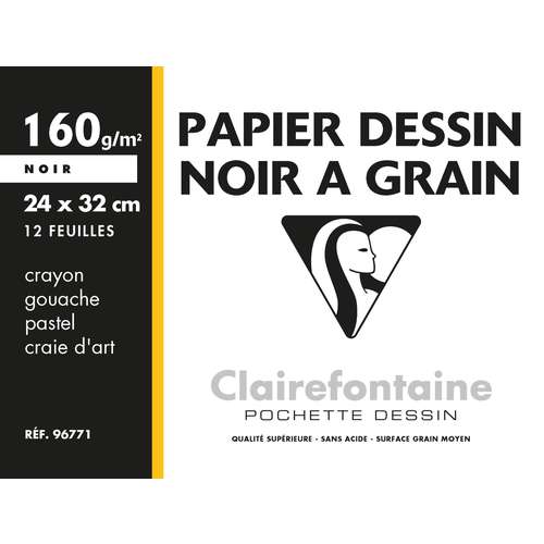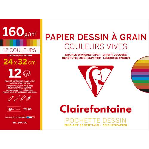 Le Papier à dessin CLAIREFONTAINE "Dessin à Grain" s´utilise pour différentes techniques de dessin sèches ou mouillées. Le grain est un peu plus fort sur une face que sur l´autre ce qui permet une assimilation parfaite des pigments. Grammage 160 g/m².