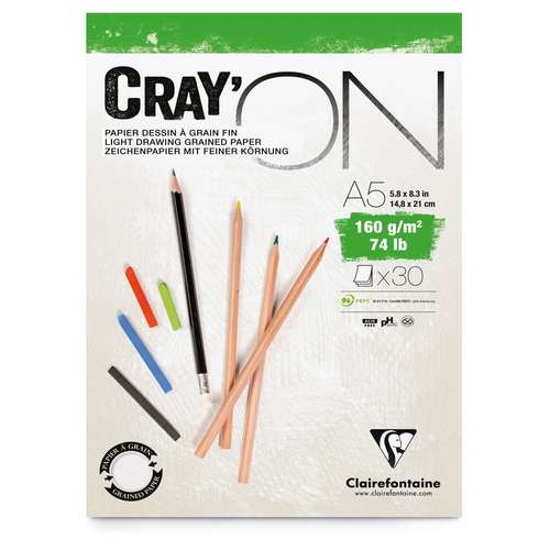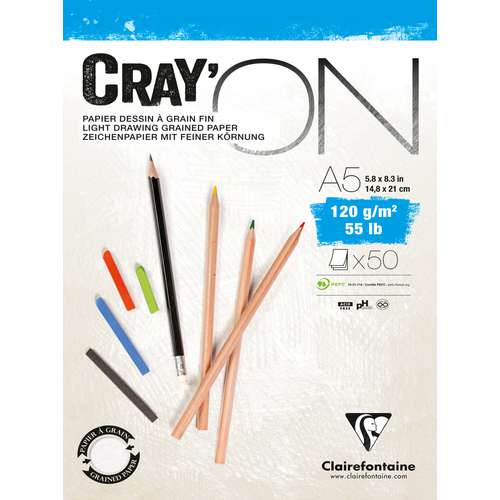 Le papier CRAY'ON de Clairefontaine résiste parfaitement aux corrections répétées par grattage ou gommage, sans pelucher. Un beau toucher et une parfaite surface pour le multi-techniques. Convient aux techniques sèches en 120 g/m² (dessin, esquisse), mais également aux techniques humides dans sa version en 160 et 200 g/m², notamment l’encre de Chine, la gouache et l’acrylique.