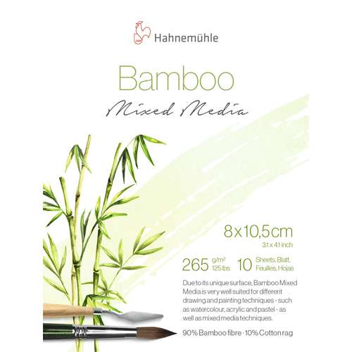 Ce papier en fibres de bambou convient au dessin, au fusain, à la sanguine, au pastel, à l'aquarelle, l'acrylique et surtout aux techniques mixtes. Superbes résultats pour les lavis, glacis et techniques humide sur humide. Un papier Hahnemühle très écologique et sans concession sur la qualité artistique.