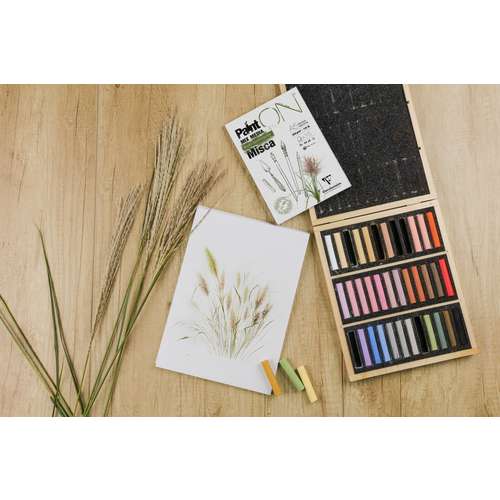 Paint On Misca convient aux techniques sèches, notamment au pastel sec, mais également à la gouache et au feutre.