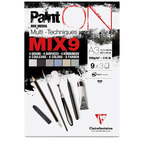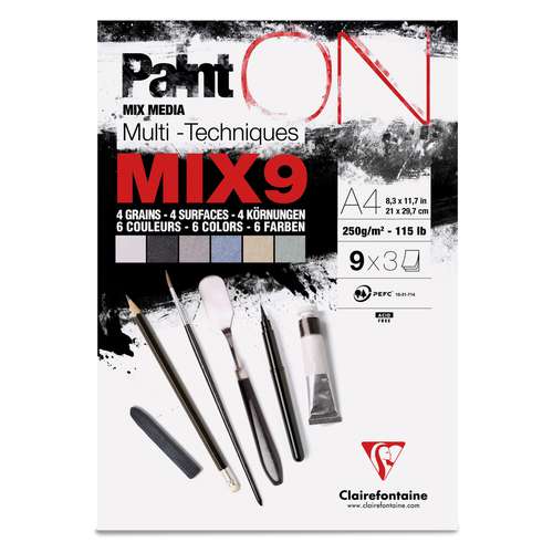 Découvrez la gamme de papier Paint’On Clairefontaine avec la sélection Mix9. Ce papier Mix-Media convient à la pratique des techniques sèches et humides.